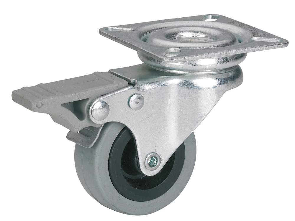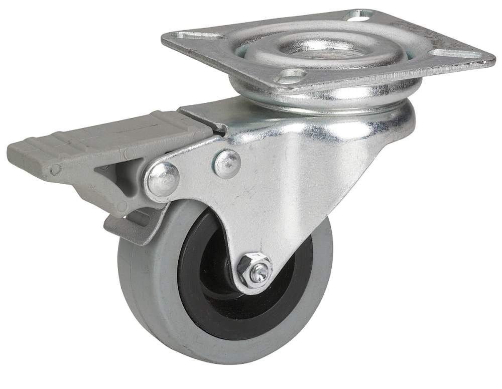 Doerner + Helmer Apparate-Lenkrolle mit Gummireifen, Platte und Totalfeststeller