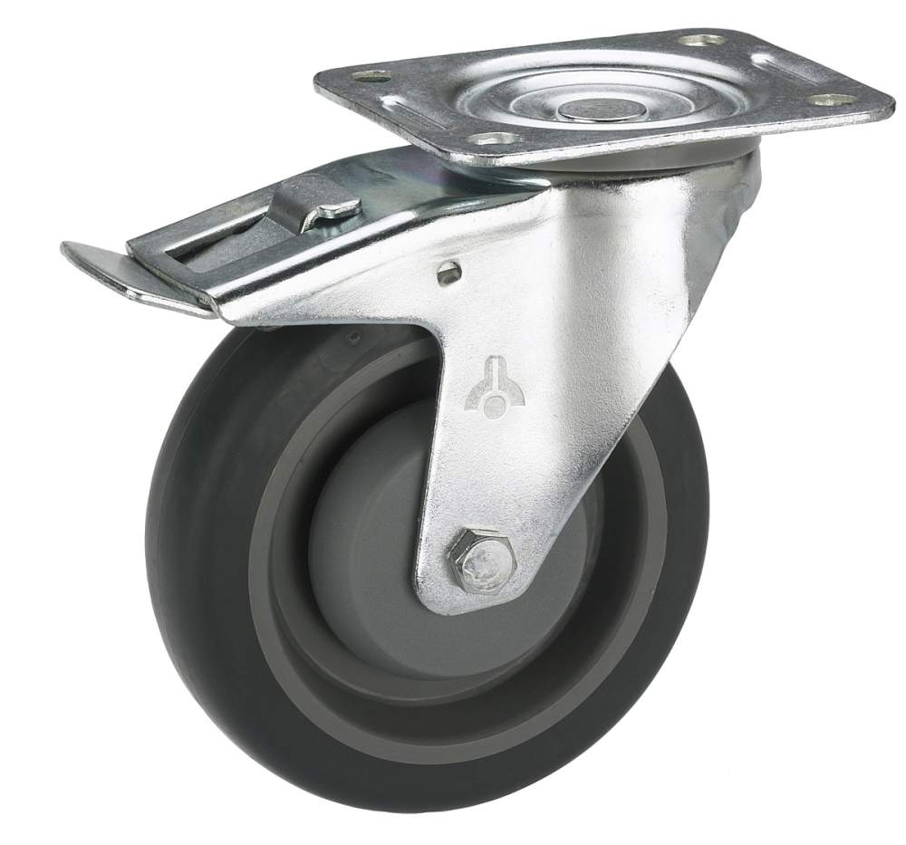 Doerner + Helmer Apparate-Lenkrolle mit TPE-Lauffläche, Kugellager, Platte und Totalfeststeller