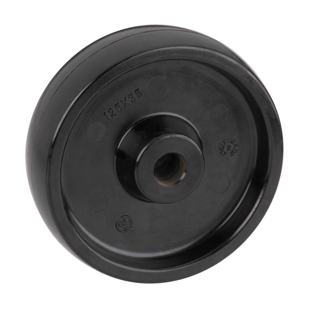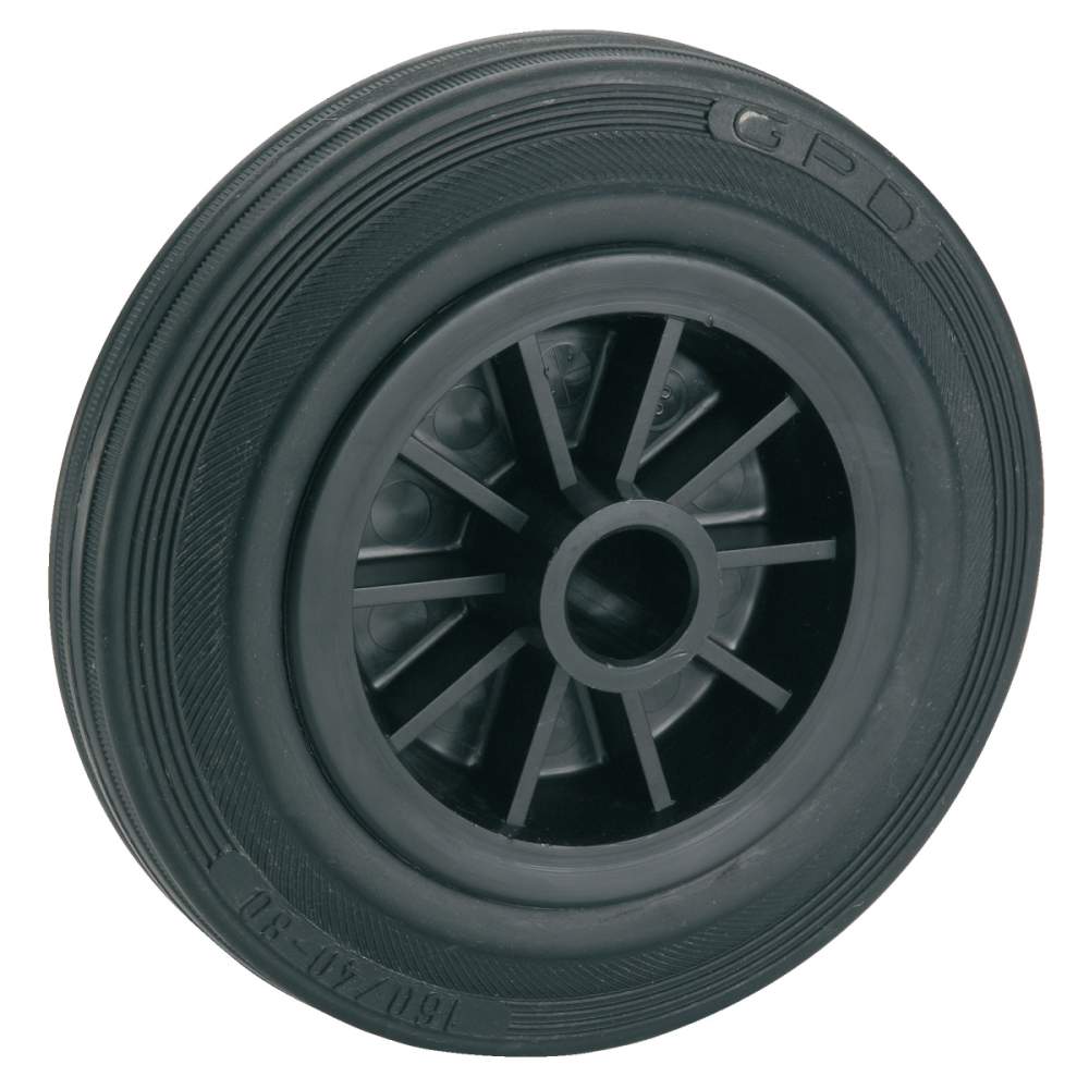 - Transportgeräterollen-Rad mit Vollgummireifen, schwarzer Kunststofffelge und Gleitlager