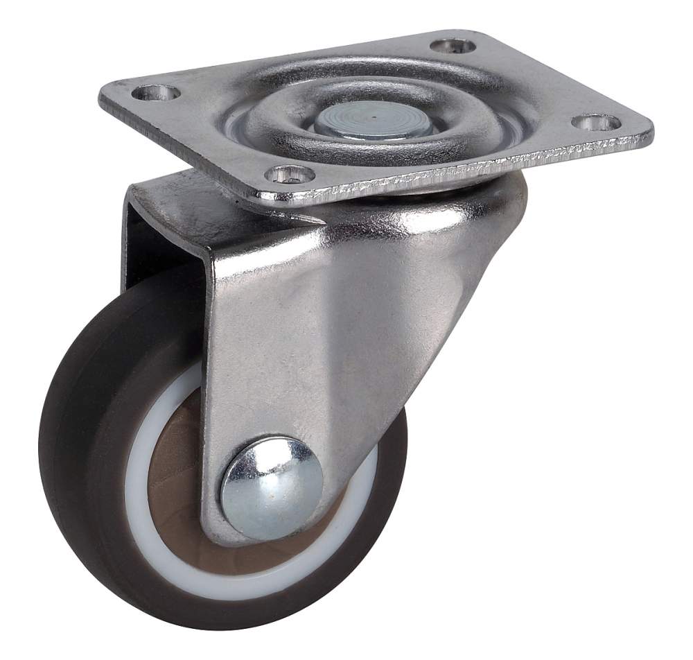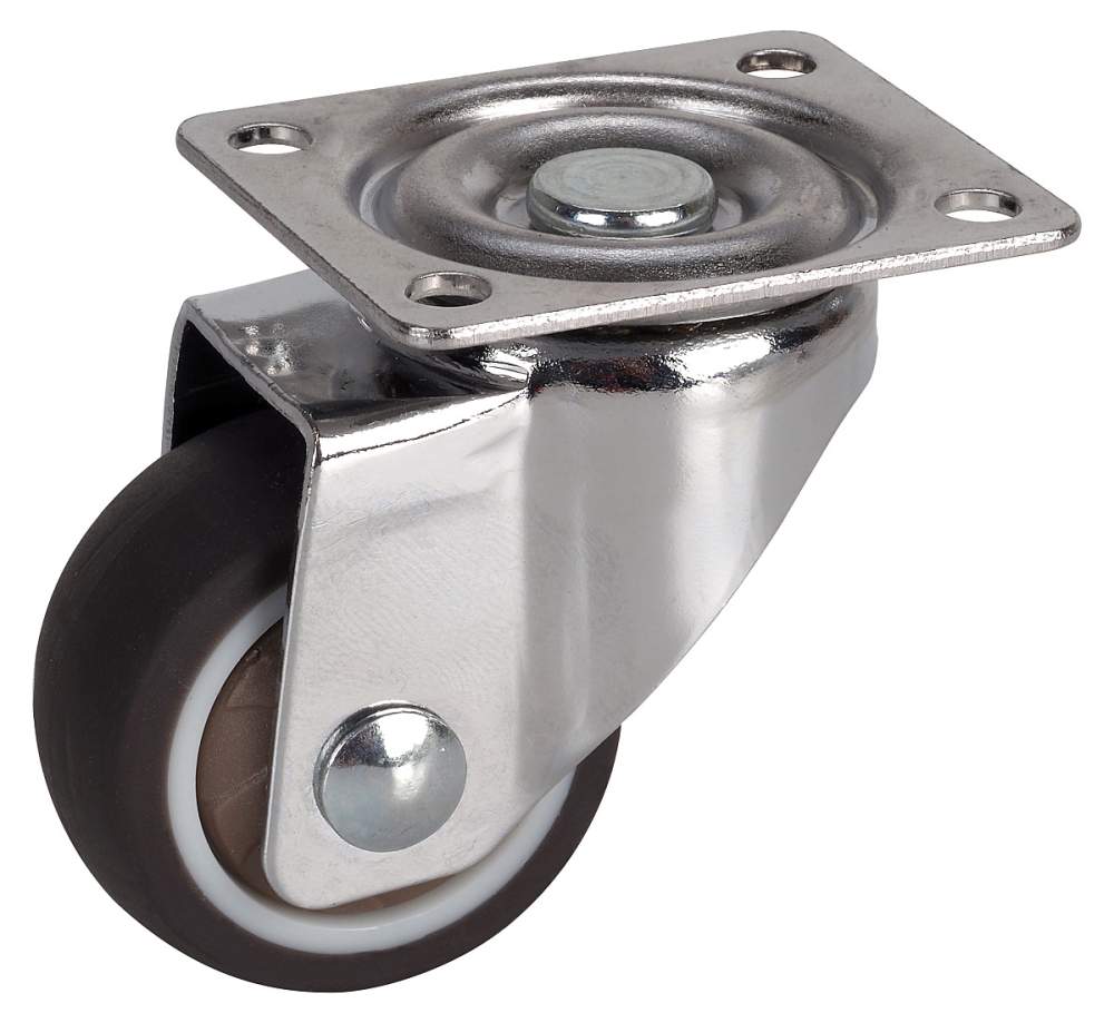 Roulettes pour meubles avec roue souple, roulettes pivotantes avec roue souple et plaque, Ø de la roue 25 mm, hauteur de construction 35 mm, capacité de charge 15 kg