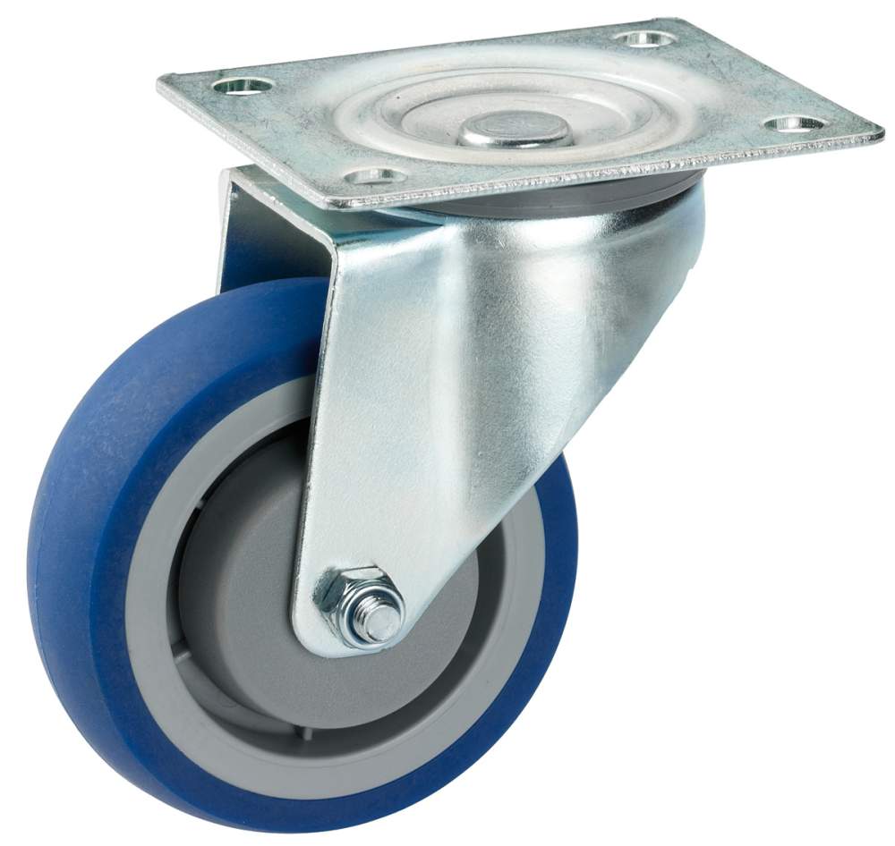 Roulettes pour appareils de transport avec jante en acier et pneus pleins, roues pivotantes avec plaque, Ø de la roue 80 mm, hauteur de construction 107 mm, capacité de charge 50 kg