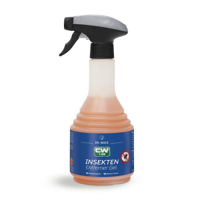 Élimine rapidement et en profondeur les résidus d'insectes, même les plus tenaces, sur la peinture, le verre et le plastique. La formule gélifiée adhère parfaitement aux surfaces verticales et assure un nettoyage efficace.