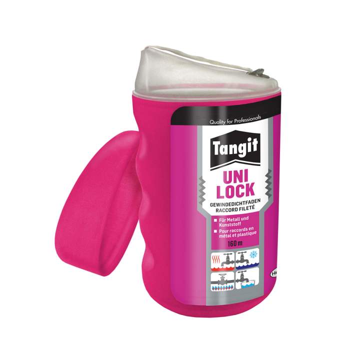 Le Tangit Uni-Lock est idéal pour diverses applications : Il assure l'étanchéité des filetages en métal et en plastique, sécurise le raccordement des robinets de sortie et des collecteurs, relie efficacement les pièces moulées et les armatures et facilite le montage des conduites d'air comprimé. Avec sa forte adhérence et sa fiabilité, ce joint fileté est un outil indispensable pour une multitude de travaux de montage et d'étanchéité.