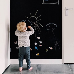 Auf einer gewöhnlichen Wand oder Oberfläche mit Schulkreide schreiben und malen: Mit der Wandtafelfarbe von MagPaint geht das! Behandeln Sie einen Teil der Wand damit und schon ist Ihre Wand mit Kreide beschriftbar. Sie wollen das Geschriebene wieder entfernen? Wie auf einer herkömmlichen Wandtafel lässt sich auch auf der Wandtafelfarbe die Wandtafelkreide mit einem trockenen oder leicht feuchten Tuch entfernen.