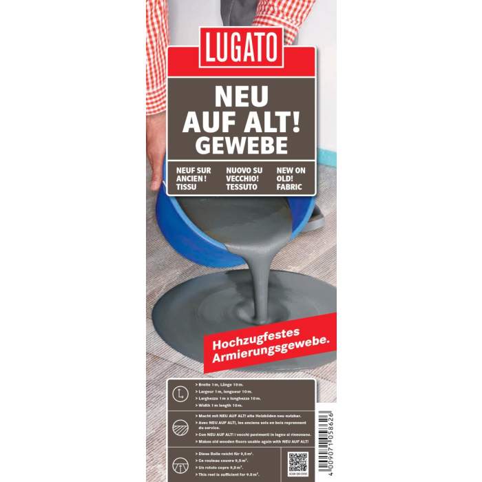 Hochzugfestes, zementbeständiges Armierungsgewebe. Gleicht in Verbindung mit NEU AUF ALT! Spannungen auf alten Holzböden aus. Das GEWEBE hat in der NEU AUF ALT! Ausgleichmasse die gleiche Funktion wie die Stahlmatte im Stahlbeton. Wichtig: Zuerst mit BESTE BASIS grundieren.