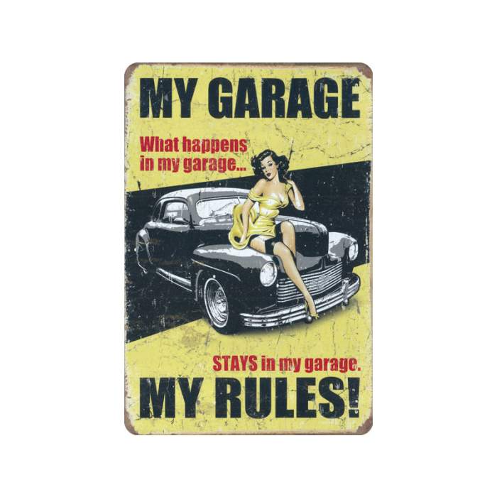 Kultverdächtiges Blechschild mit vorgebohrten Löchern für eine einfache Wandmontage.
