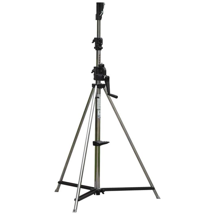 Kurbel-Stativ Premium Stahl verzinkt, geeignet für 16 und 28 mm Zapfenaufnahme, automatisches Sicherheitschloss, 1 Fuss verstellbar zum Ausgleich von Geländeunebenheiten,selbstbremsende Kupplung, klappbare Kurbel H max = 3,80 m, H min = 1,74 m, D = 1,24 m